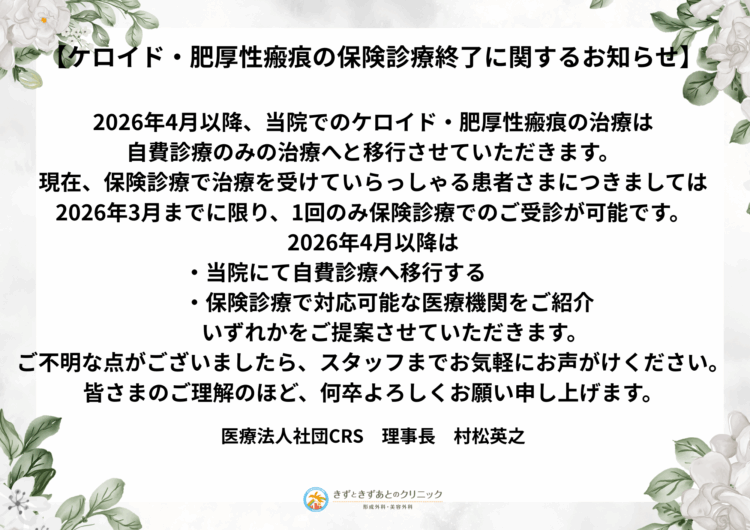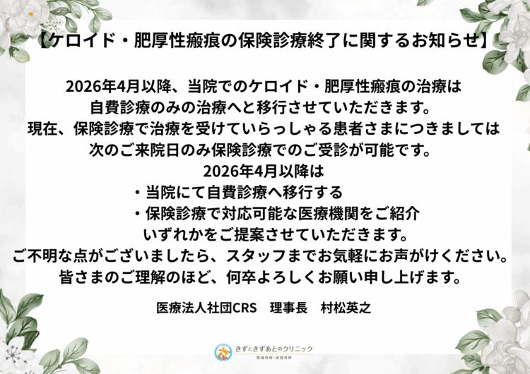 ケロイド・肥厚性瘢痕の保険診療終了に関するお知らせ