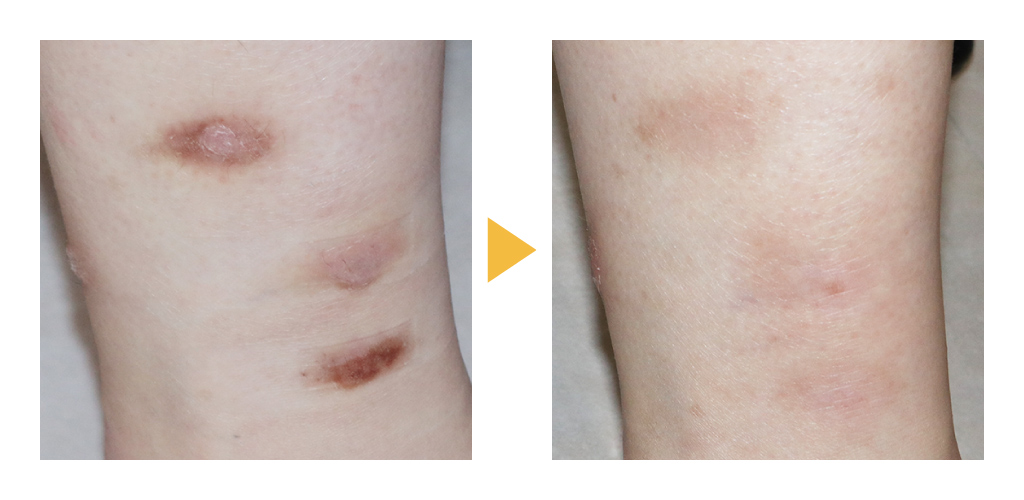 右下肢3か所、左下肢1か所色素沈着 - きずときずあとのクリニック 豊洲院